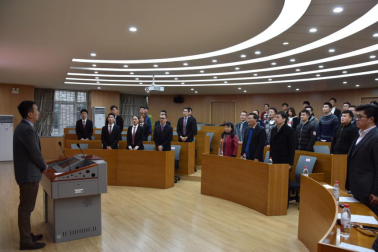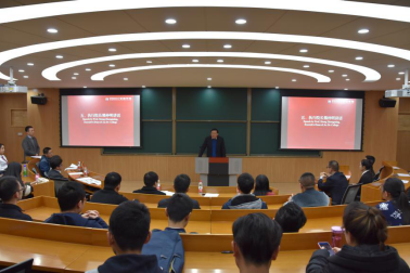 执行院长熊仲明讲话,他表示希望所有研究生会干部树立大局意识、增强服务意识、强化责任意识;用无怨无悔的奉献精神和开拓进取的创新精神,做好研究生会的工作;担起学院建设与发展的责任与使命,走出中外合作办学的特色之路。