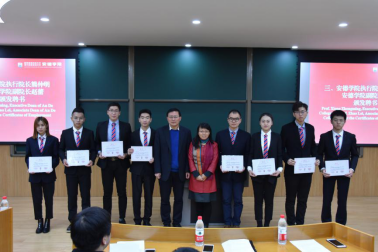 执行院长熊仲明,党支部书记、副院长刘言正,副院长赵蕾,行政办主任郑涛,学工办主任、团总支书记孙灵通,2018级本科生辅导员张嘉雯,午夜影院