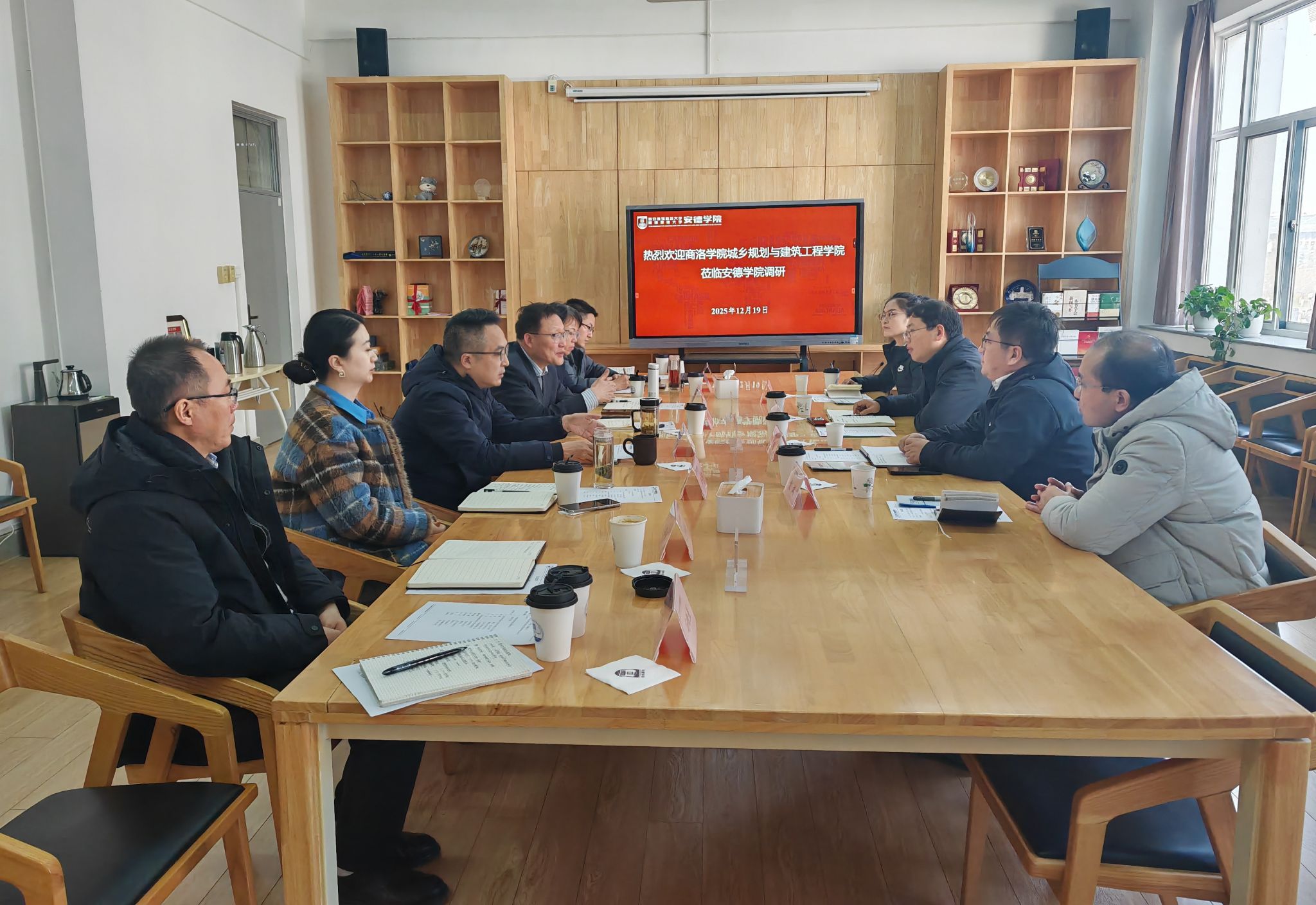 12月19日上午,商洛学院城乡规划与建筑工程学院党委书记、院长杨小锋一行4人来我校午夜影院 调研交流,午夜影院 领导班子和相关科室负责人参加会议,会议由副院长郑涛主持。
