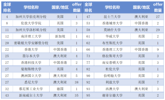 毕业生出国(境)主要深造院校一览表