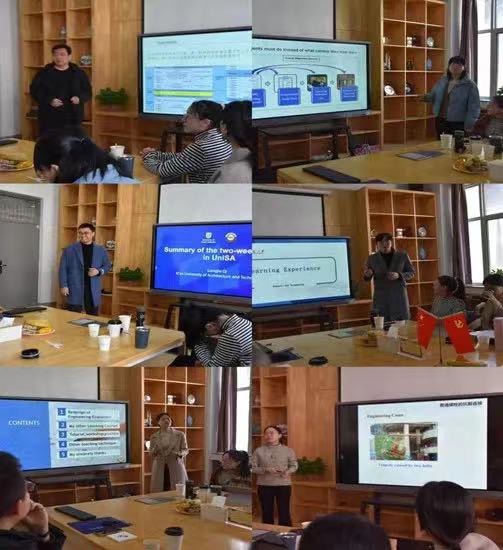 谭咏光老师在整体的学习与交流中,通过理论与实际相结合的方式,让我们知道他深刻学习、了解到了国外先进教学理念和优秀教学方法,为今后在课堂教学中更好的提升教学质量打下坚实的基础。罗婵老师在澳洲的学习中体验到了多元文化,自由的氛围和注重实践的教学方法,并期待未来更多更好的交流与合作。徐莹璐老师利用有限的时间给大家呈现了一节精彩的普通螺栓的抗剪连接课程。她在澳洲学习的一个月不仅认识了各个不同专业的教师,同时学习了如何分阶段目标引导学生更好的学好一门课程,直观的感受到了国内外授课的差异。戚亮杰副教授用流利的英文进行了此次汇报。从盛夏的西安到寒冬的澳洲,这一个月的学习他发现了更多教学的可能性,在南澳大学的所学所得将应用于未来的双语课教学之中。
