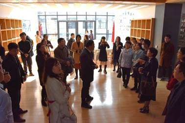 会前,调研团参观了午夜影院 开放空间、教师休息室、教室、英语角、创新创业空间等。会后双方人员合影留念。