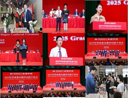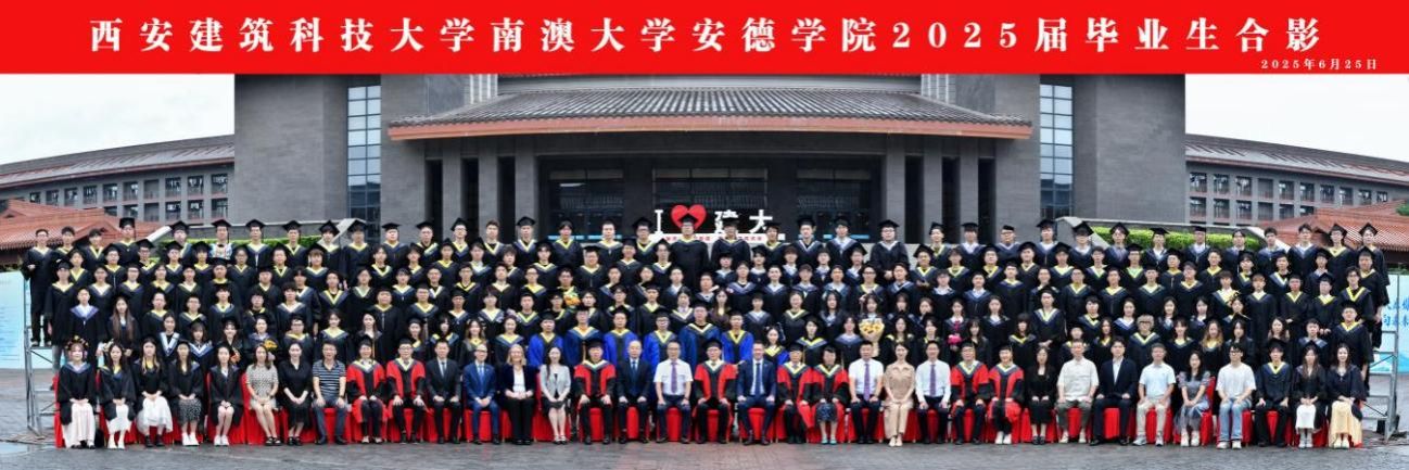2025年毕业典礼暨学位授予仪式在草堂校区紫阁大礼堂举行。学院领导班子、南澳大学代理副校长(国际)Darren Turner,本科生院、国际交流合作处、草堂校区管委会办公室等职能部门负责人,土木工程学院、建筑设备科学与工程学院、管理学院、信息与控制工程学院等相关院系教师代表、毕业班辅导员以及2025届全体毕业生出席典礼。典礼仪式由学院党总支副书记、副院长张紫薇主持。