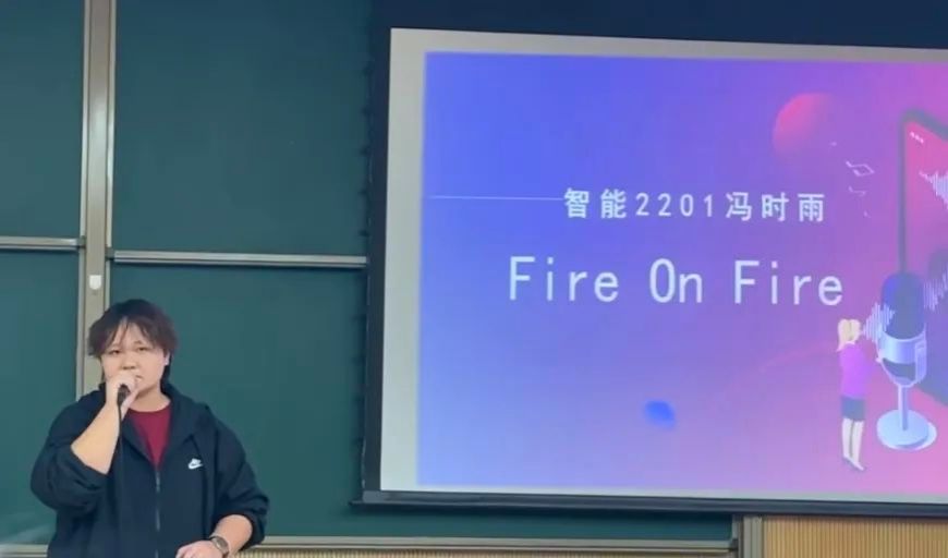 比赛期间,由智能2201冯时雨同学演唱的歌曲《Fire on Fire》将决赛现场的气氛推向另一个高点。
